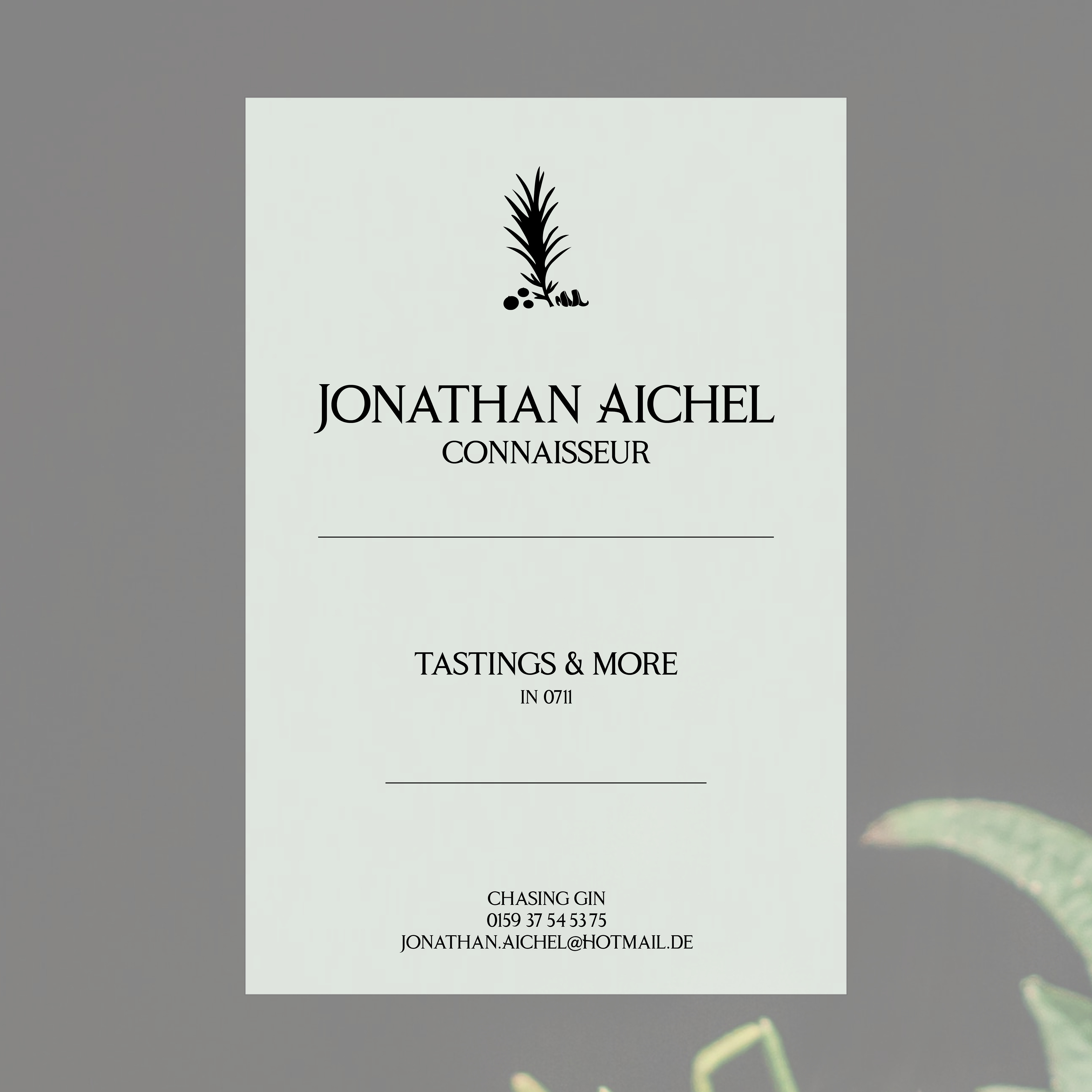 Visitenkarte für einen Connaisseur zur Vermittlung von Gin-Tastings.