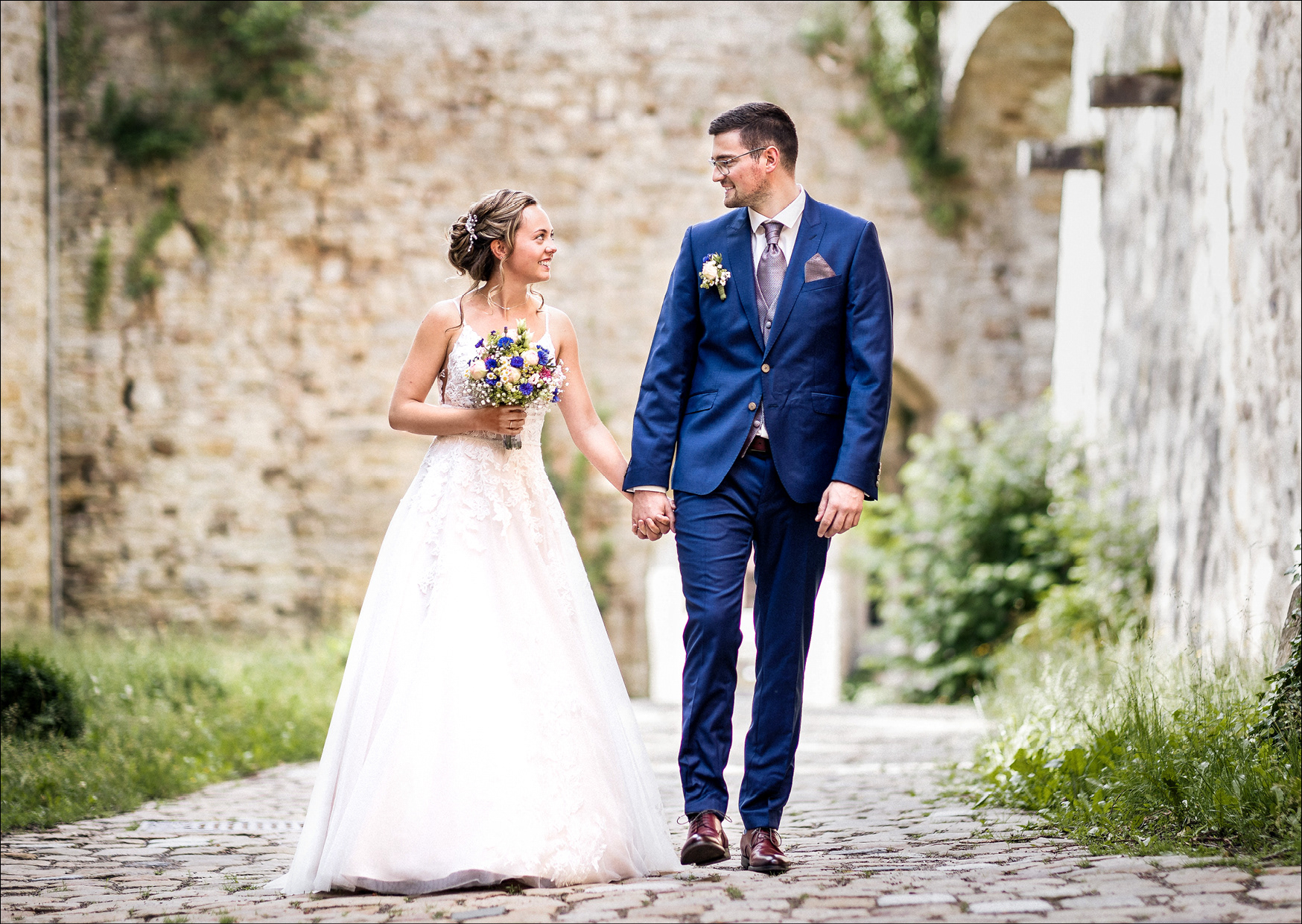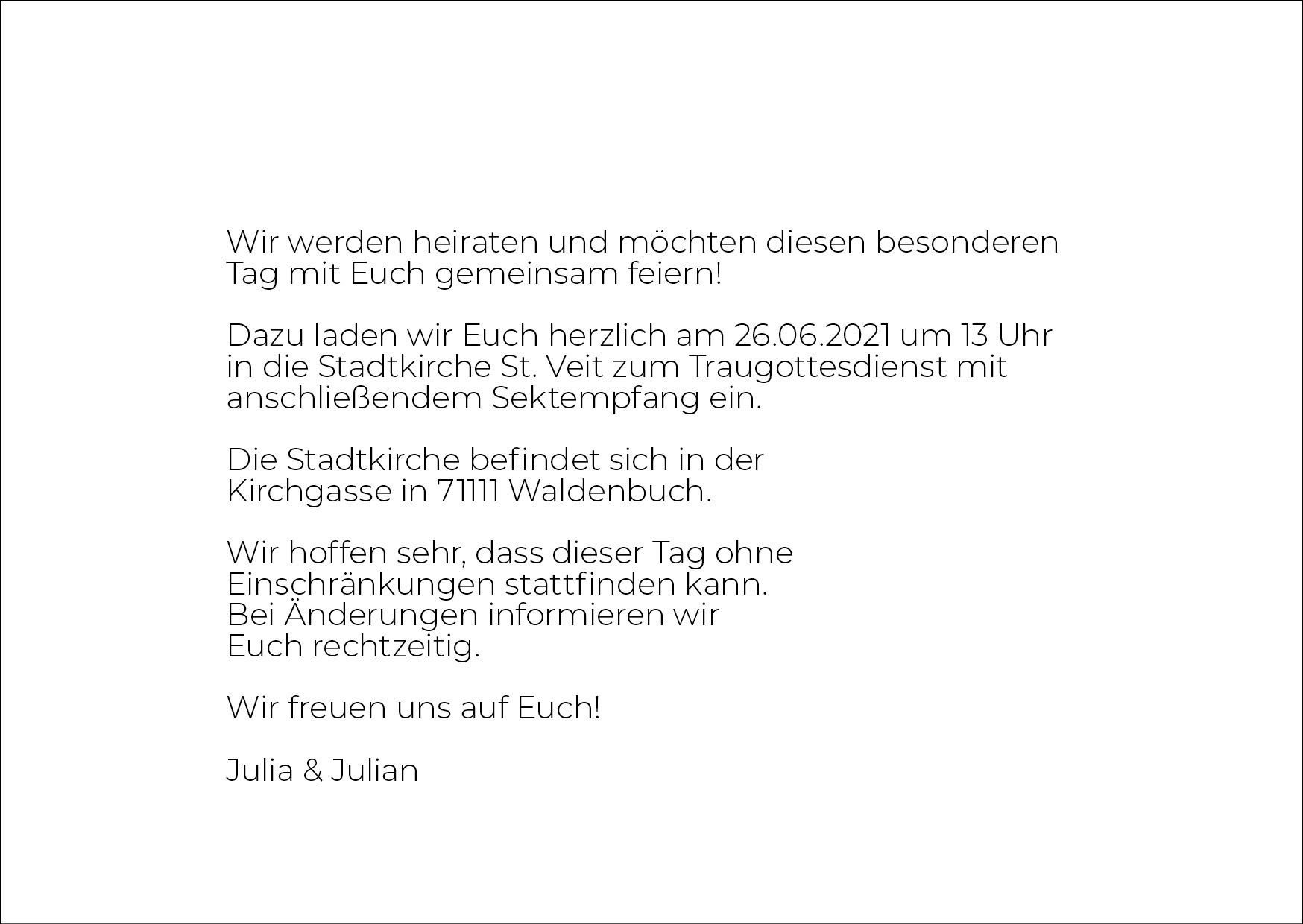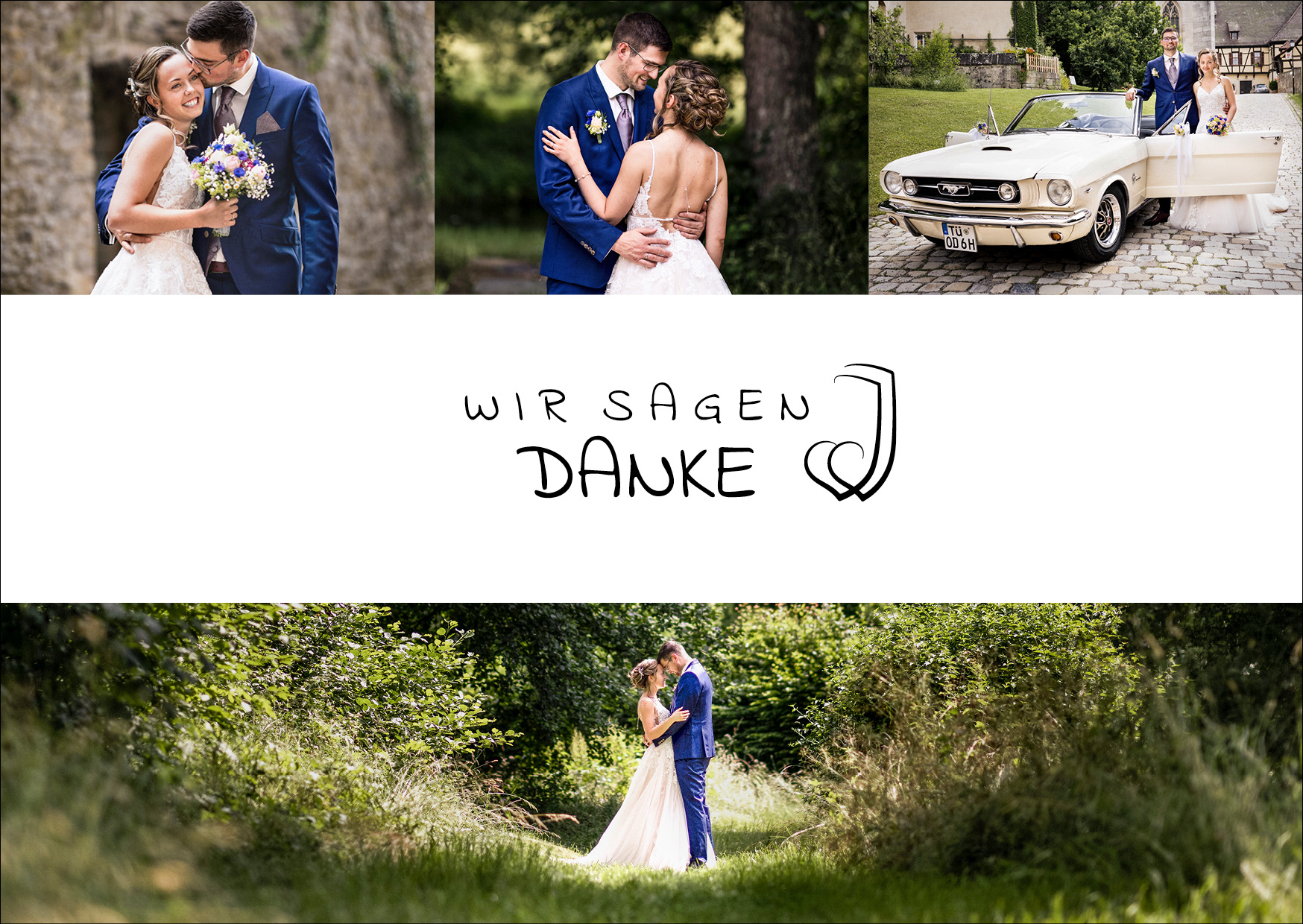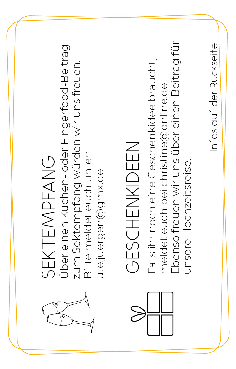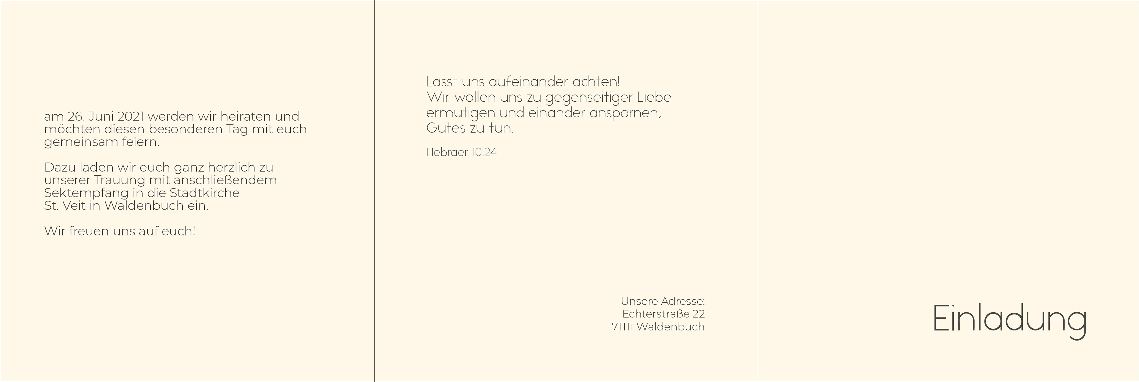 Eine Hochzeitseinladung, mit Einlegekarten, eine Verlobungs- und Dankeskarte.