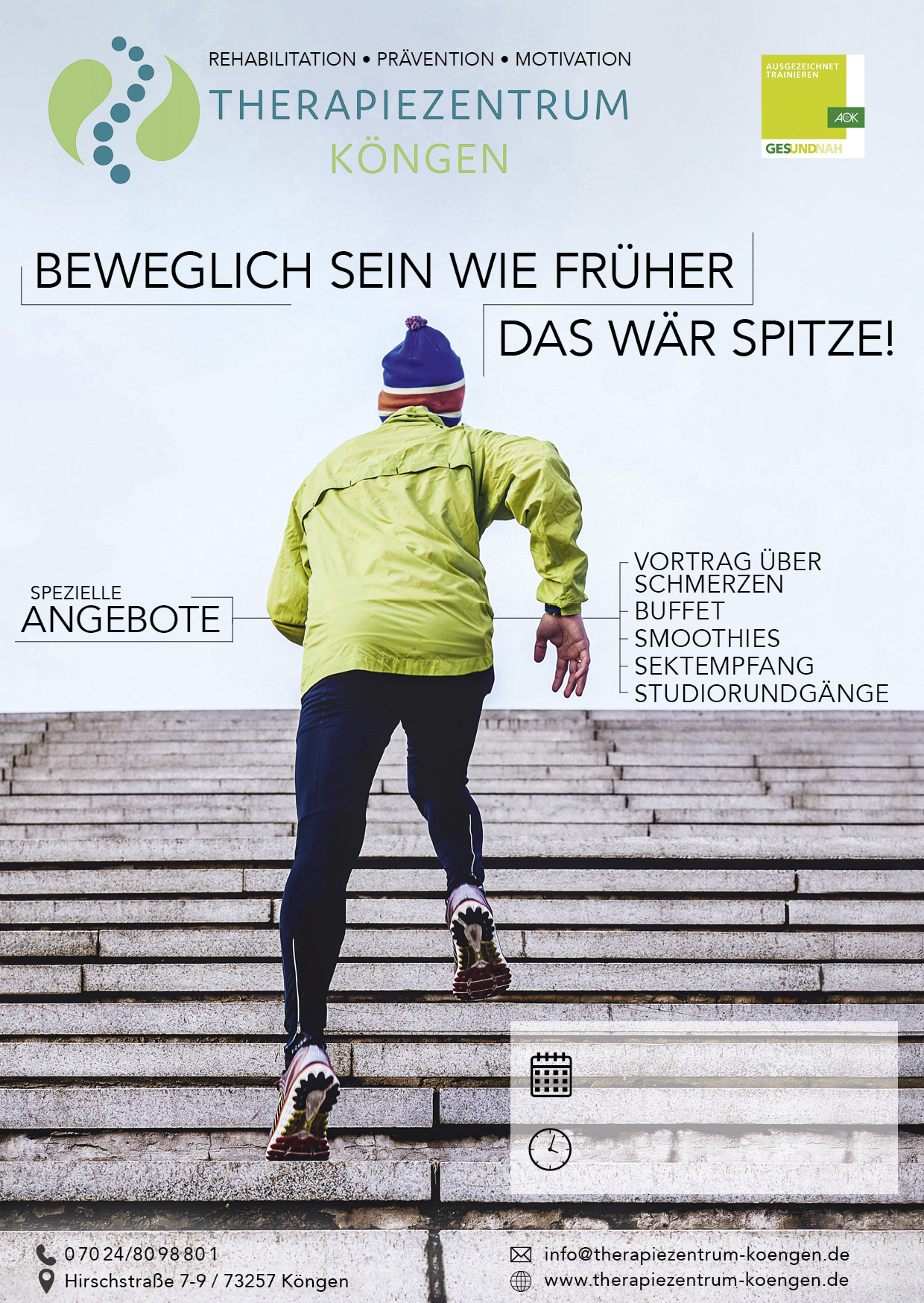 Flyer für das Therapiezentrum Könnten zu gegebenen Anlässen.