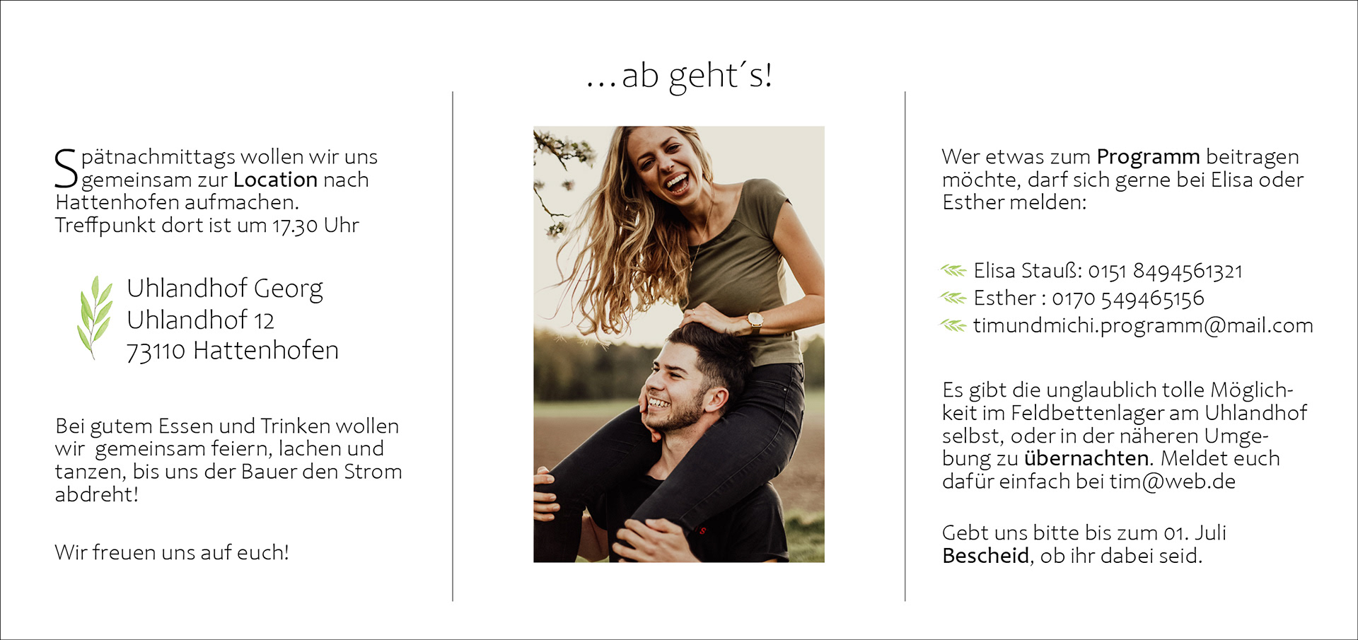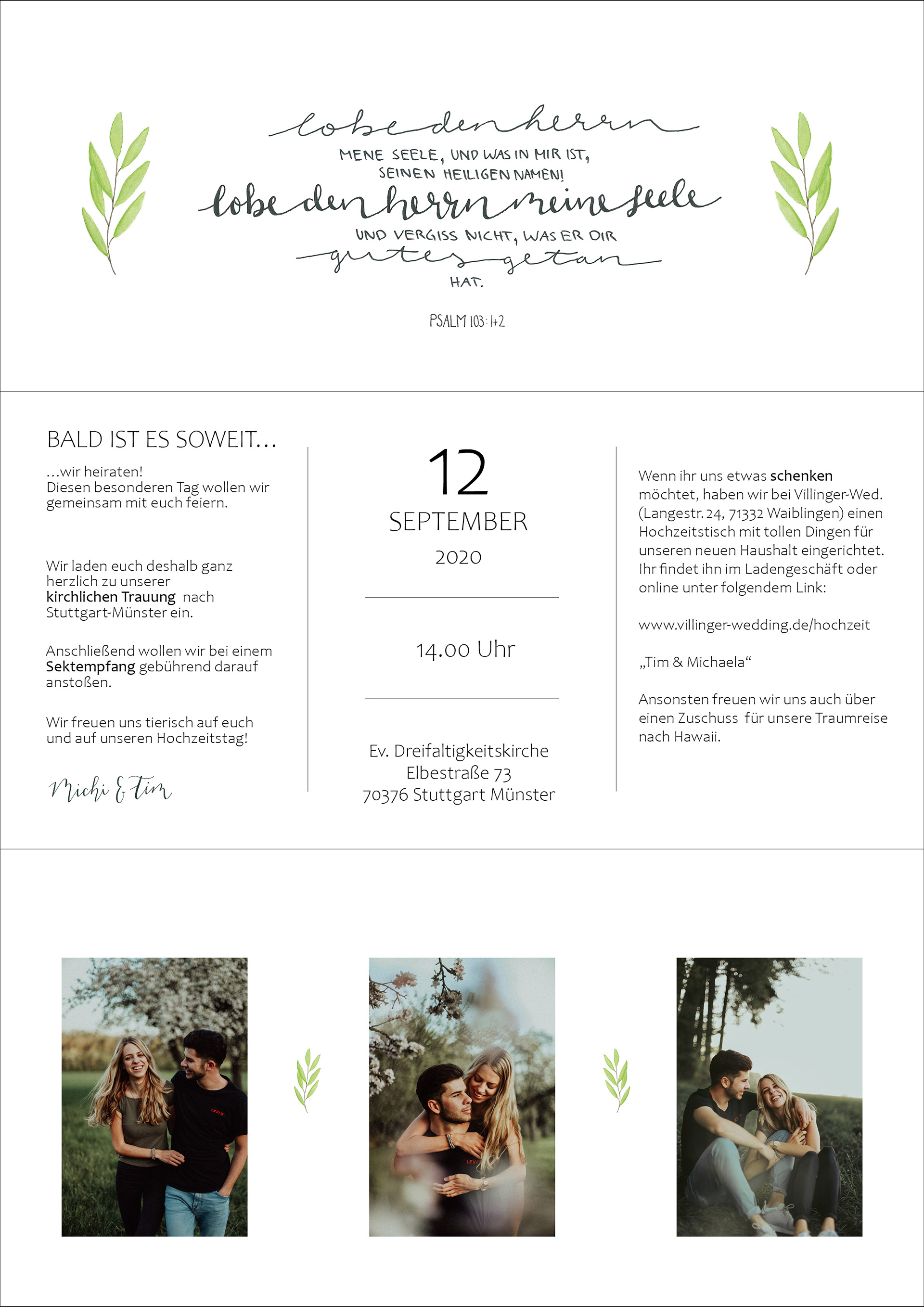 Einladung zur Hochzeit und Dankeskarte für alle Gäste.